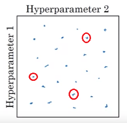 We might find the two points work best. Then, in the coarse to fine scheme, we zoom in to a smaller region of the hyperparameters and then sample more density within this space.