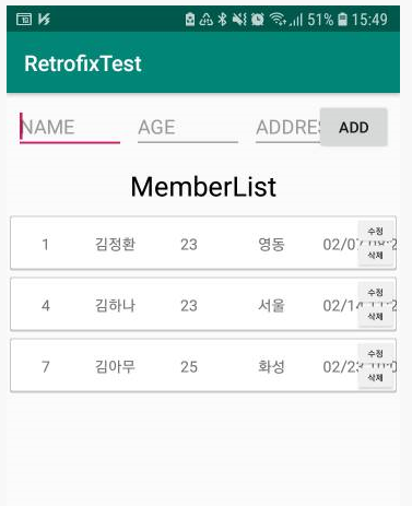 이름, 나이, 주소를 넣고 ADD를 누르면 DB에 추가 됩니다.