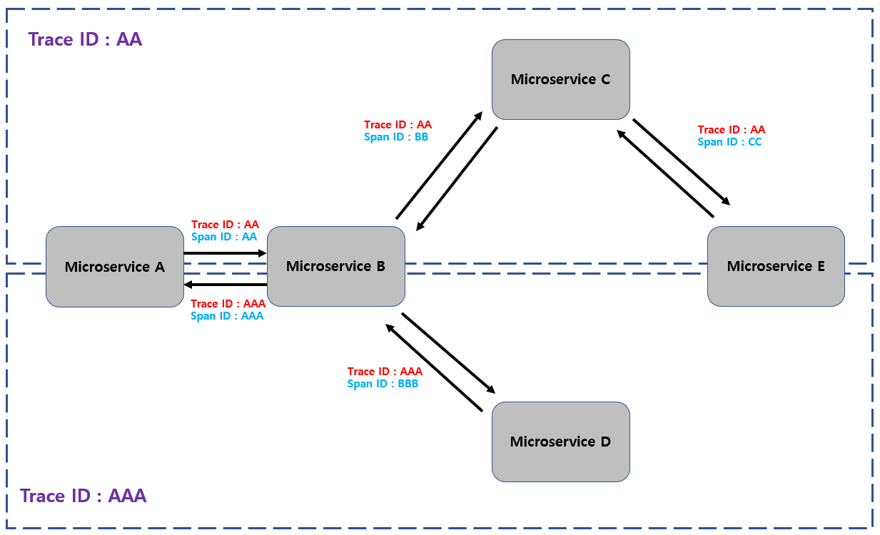 - 하나의 요청에 대한 같은 Trace ID 발급