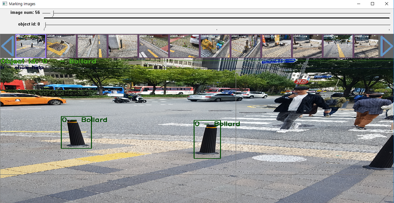 10월이 오기 전에 저는 YOLO를 사용하여 bollard를 어느 정도 학습시키기로 했습니다. YOLO에 대한 내용은 여기에 제가 정리해서 올려 놓았습니다. 개발 내용이 아닌 스토리를 이야기 하자면, CNN모델 처럼 이미지 사진을 모델에 그대로 넣어서 학습시키는 줄 알았습니다. 다시 말하면, 전처리 없이 그냥 넣으면 되는 줄 알았습니다. 하지만, 사진에 bounding box를 그려 넣는 전처리 과저이 필요했습니다. 그래서 허겁지겁 yolo_mark 사용법을 배워서 2만장이 넘는 이미지를 제가 손수 bounding box를 그려 넣은 기억이 있습니다. 1개의 사진당 3초정도 걸렸으니 8시간 넘게 네모 박스만 그리고 있었습니다.
