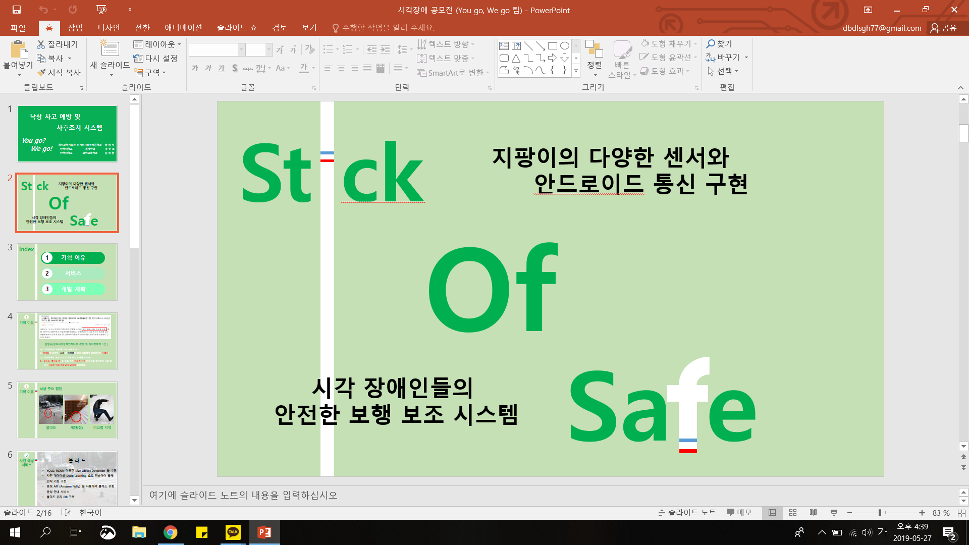 발표 내용의 일부분 입니다. 첫번째 표지는 Stick of Safe라고 했습니다. 이것을 만들 당시에 지팡이를 활용하자고 했었으나 나중에 브로치가 되었고, 다시 표지를 만들기에는 시간이 부족해서 그대로 사용했습니다. 개발 계획에서 저의 보유 기술은 feature engineering과 deep learning이라고 기재되어 있습니다. 현재 다시 보니 아직 초보라는 것이 많이 보입니다. feature engineering은 기술로 쓰기에 다소 약하고, deep learning보다는 machine learning이 더 적합하다라고 생각합니다. 지금 보니 손발이 오그러들지만 대견해 보입니다.