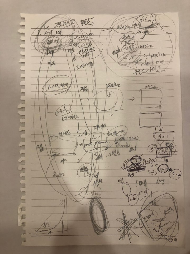 본격적인 앱 개발에 돌입했습니다. 그전에 각 팀마다 멘토님을 배정해 주셨습니다. 저희도 그분을 만나서 앱 개발 멘토링을 진행했습니다. project manager로 일하시는 멘토님은 저희의 개발 수준과 남은 일 수를 고려하여 일정을 계획해 주셨습니다. 아래 그림은 일정과 수행 업무를 기록한 종이입니다. 처음에 글을 쓸 때는 깔끔했는데 계속 추가해서 쓰니 굉장히 더러워 보입니다. 첫 번째 종이를 보면, 어떤 단계로 개발이 이루어지는지 기록되어 있고, 하단에 몇 월까지 어떤 기능을 끝내야 하는지 기록되어 있습니다. 두 번째 종이는 해야할 일별로 기간에 따라 정리했습니다. 세 번째 종이는 서버와 앱의 통신 과정을 기록했습니다. 서버와 통신에 대해서 하나도 몰라서 여쭈어 봤습니다. 네 번째는 빠른 시일내에 확인하고 알아봐야 할 일을 기록해 놓았습니다. 다섯 번째는 어플 주요 기능과 관련 내용을 써놓은 것 같습니다. 여섯 번째 종이는 첫 메토링 내용을 요약했니다.